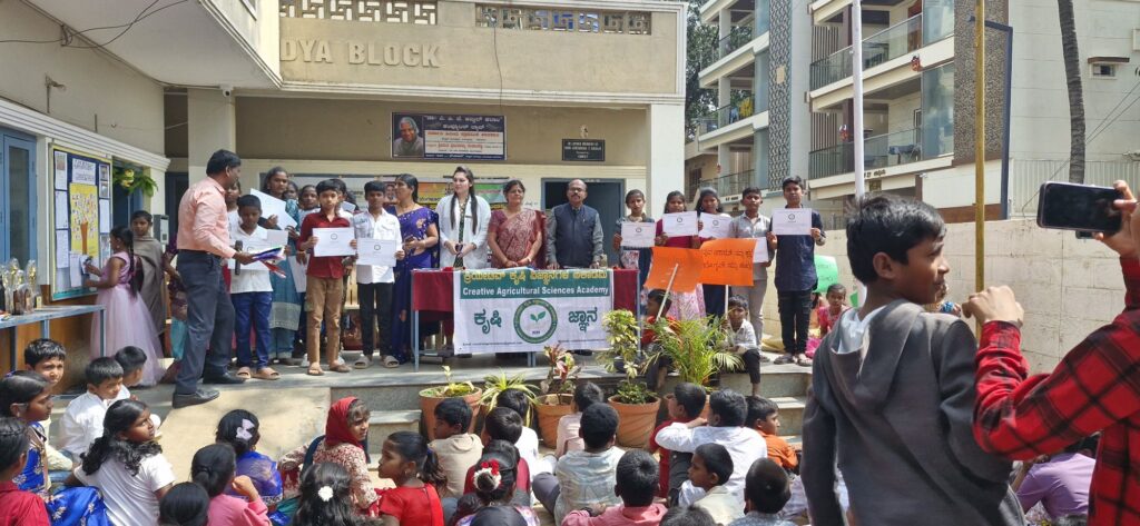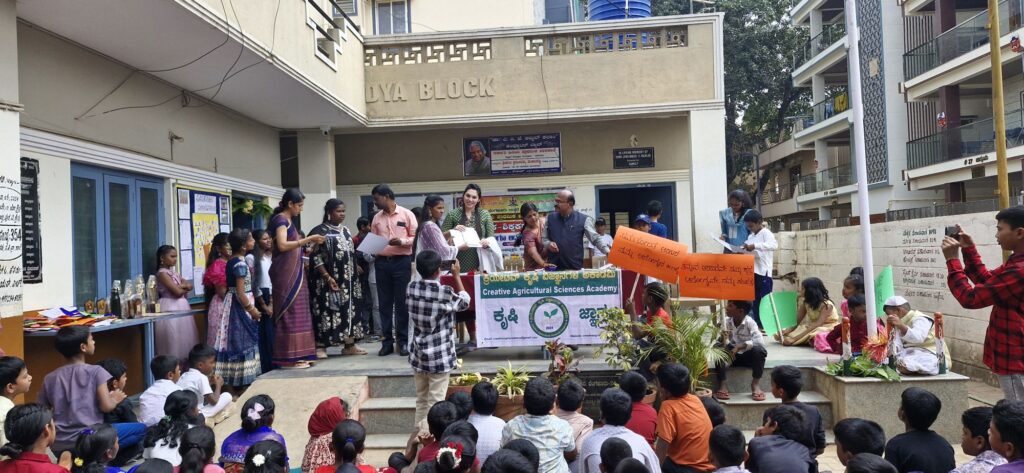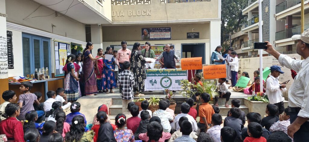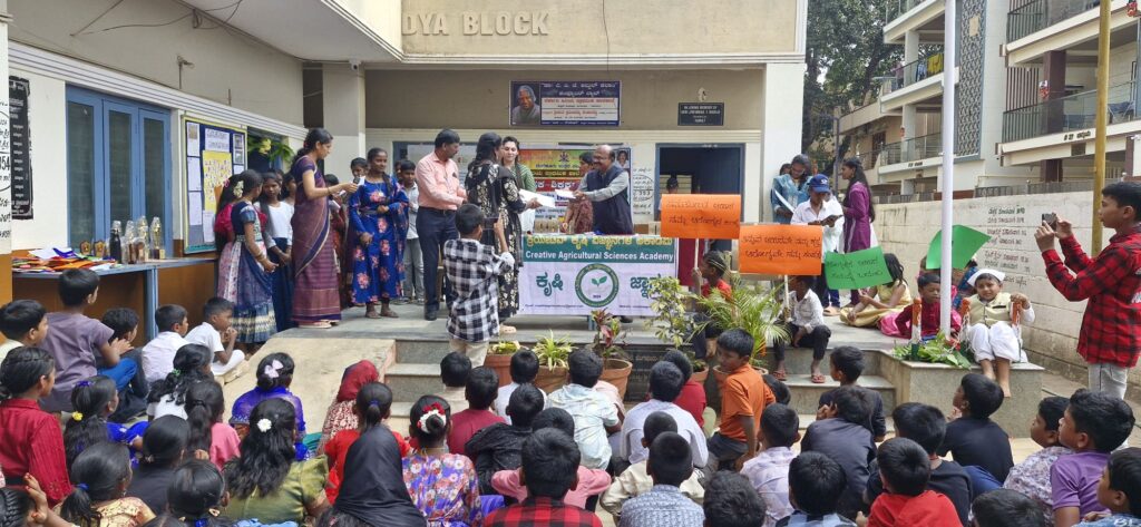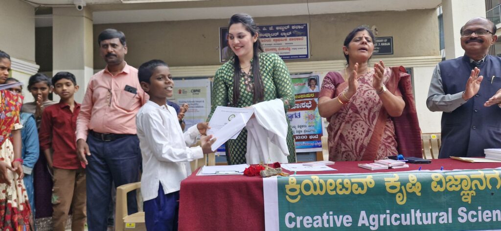 Certificate distrubution programme for the Krishi Jnana Pragramme-short course at Govt Higher Primary School, Hebbal Kempapura, Bengaluru North on 14.11.2025 conducted by Creative Agricultural Sciences Academy and coordinated and sponsorship by Dr. Basave Gowda. 22 student written the exams. Dr. Basavegowda, Mrs. K. Usha, HM, Mrs. Manjula, Associate Teacher, Dr. Iswaryya, Govt Medical Officer, Mrs. Vidya, sub inspector, Amruthnanagar police station, other faculty, students and parents were participated in programme. During the programme top five students awarded prizes and certificates and others with certificates.